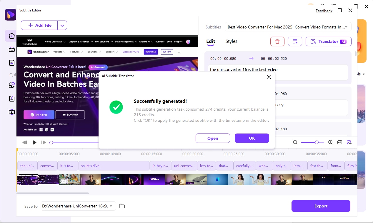 - Tradutor de Legendas com IA | Wondershare UniConverter para Mac